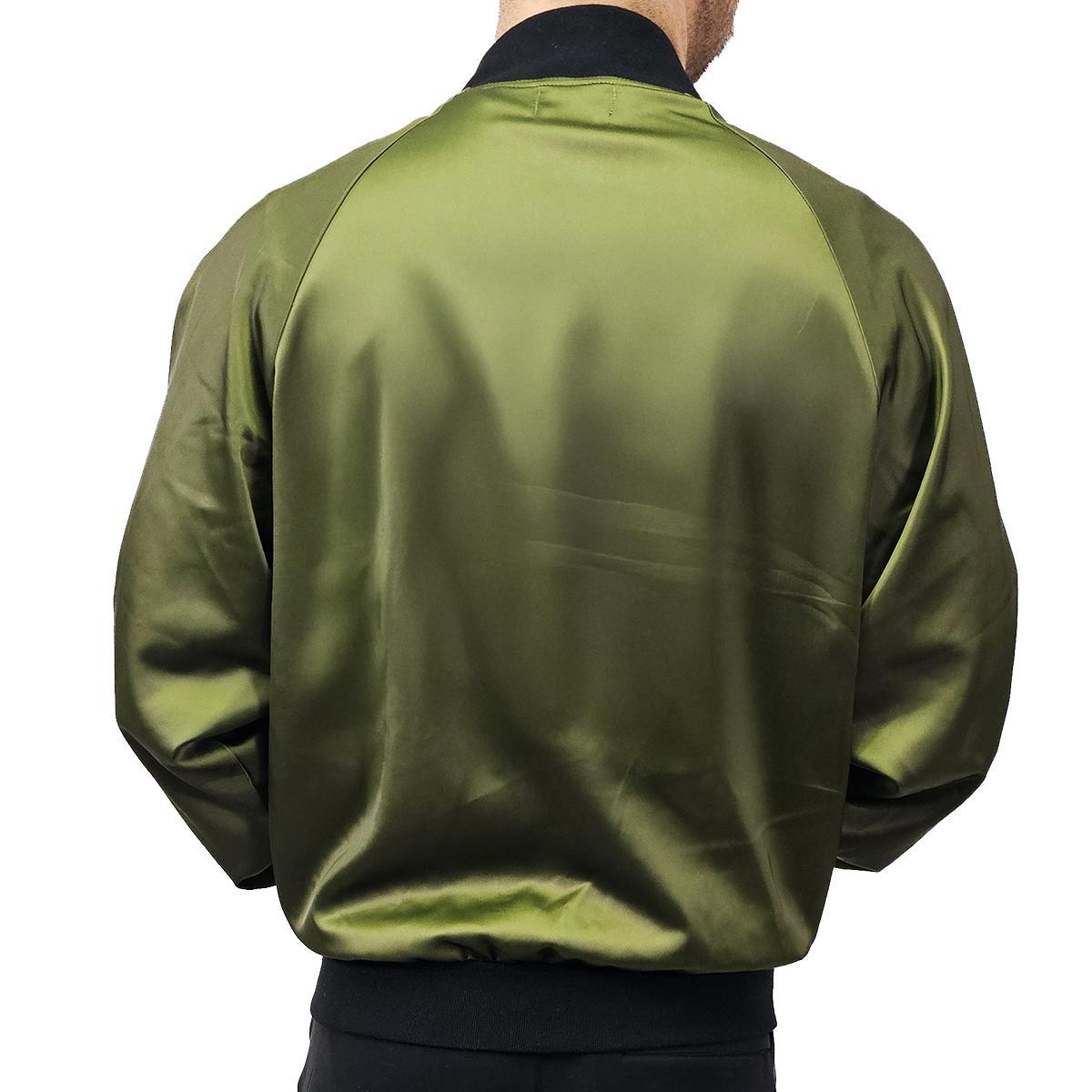 Army Green Satin Bomber Jacket - Military-Inspired Street Style