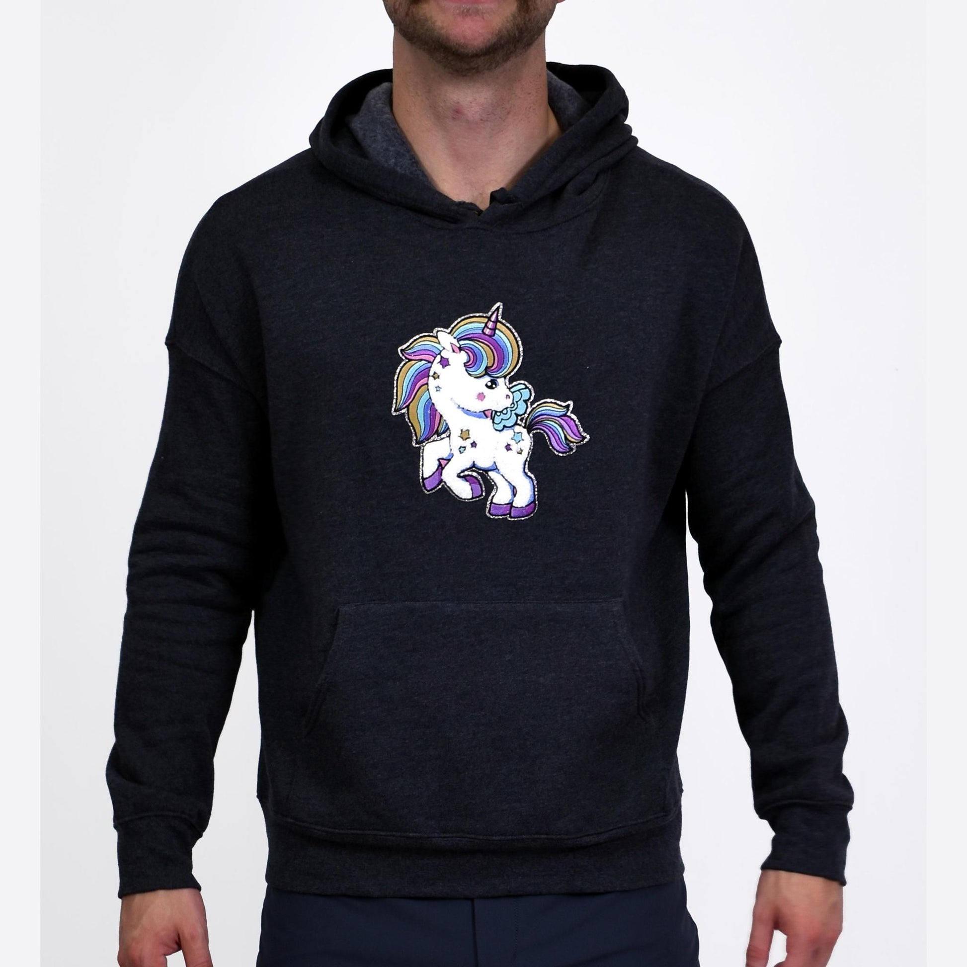 Baby Unicorn Embroidered Charcoal Grey Pullover Hoodie