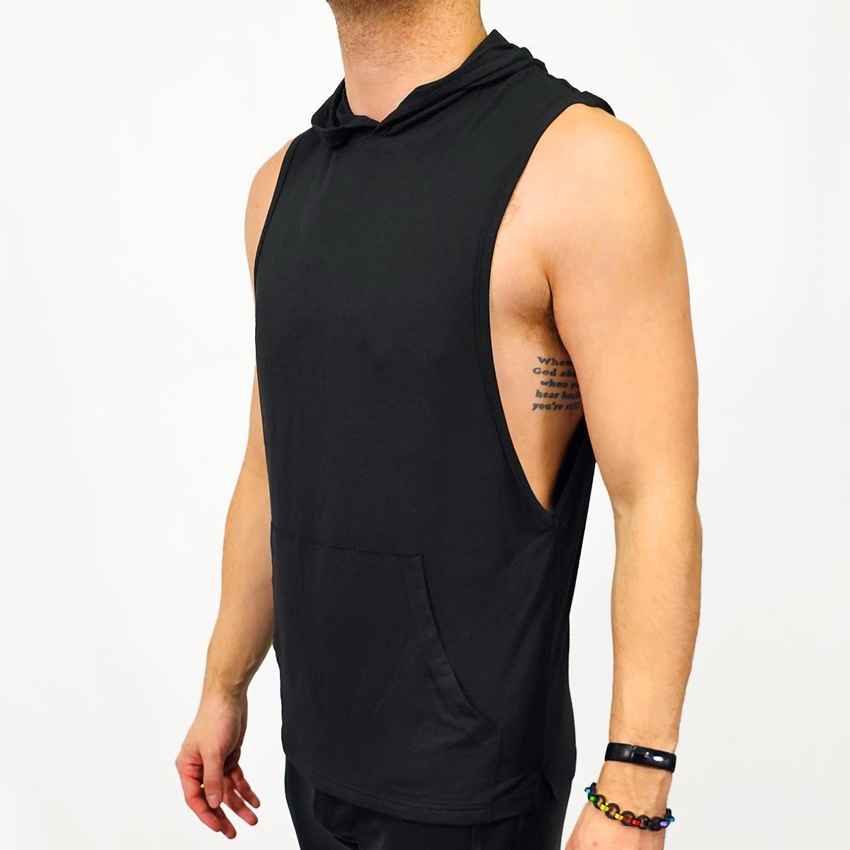 Black Modal Muscle Tank Hoodie - Premium Modal Fabric