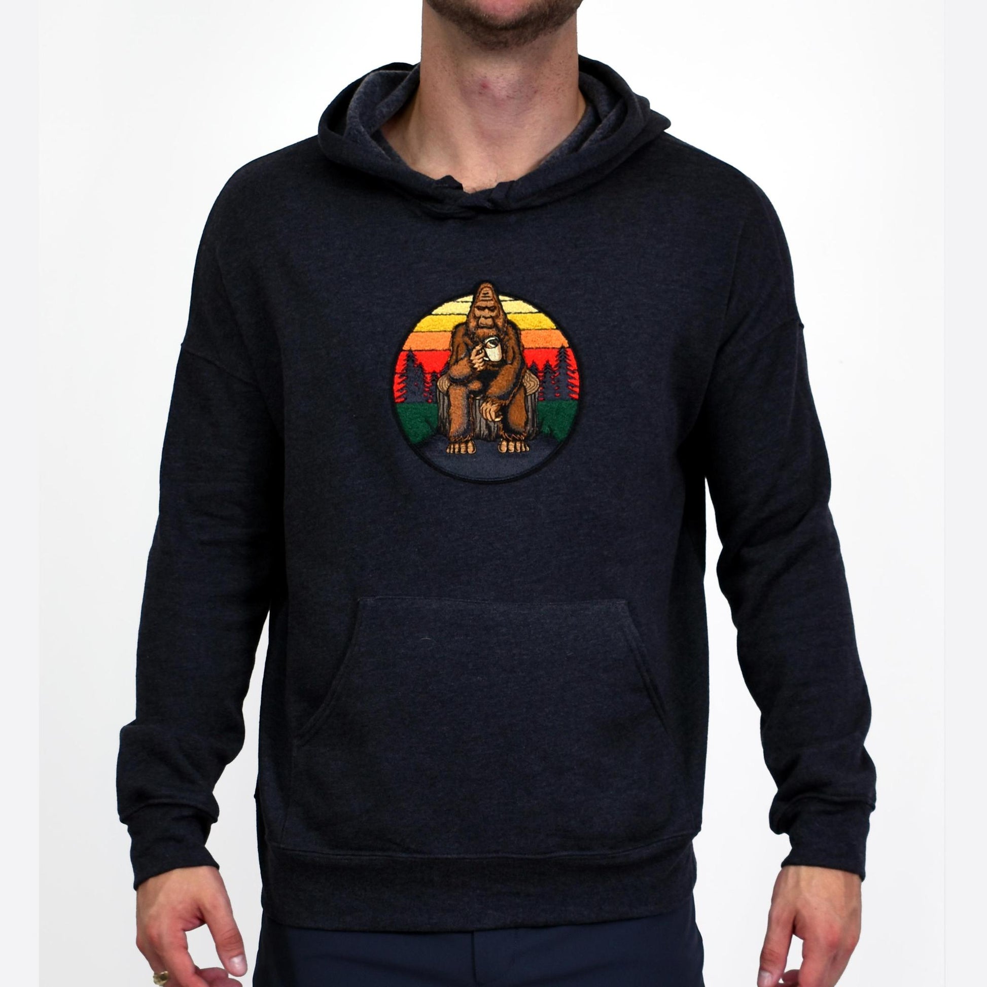Caffeinated Big Foot Embroidered Charcoal Grey Pullover Hoodie