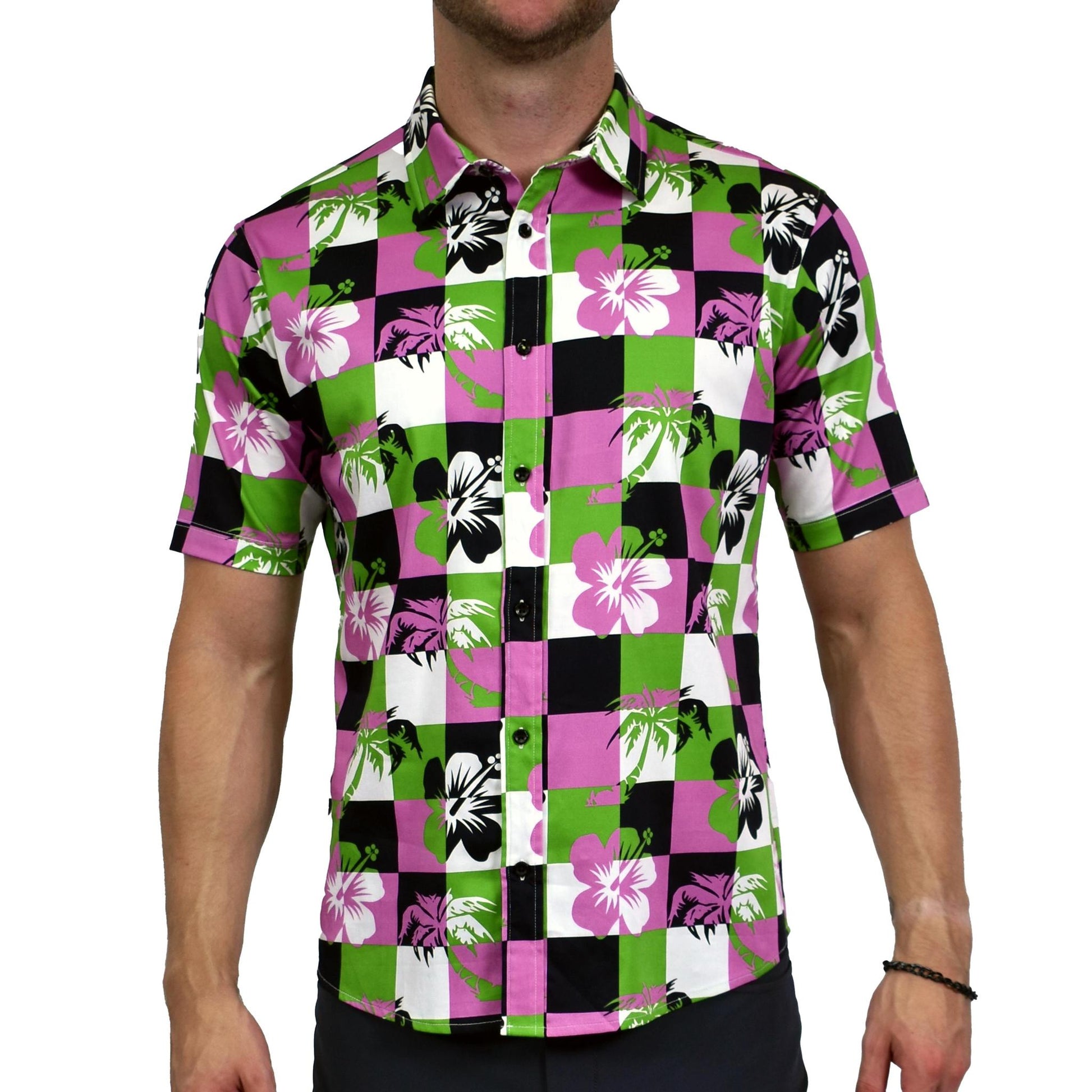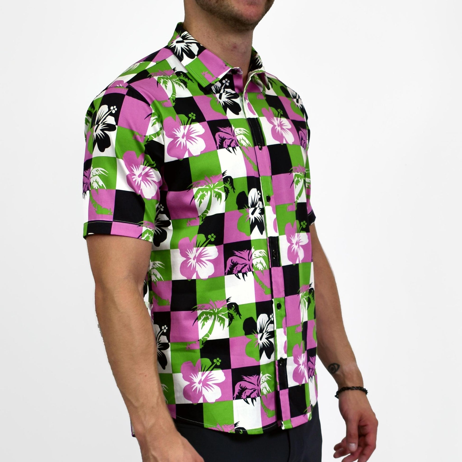 Retro 90's Tropical Stretch Cotton Short Sleeve Button Down Shirt