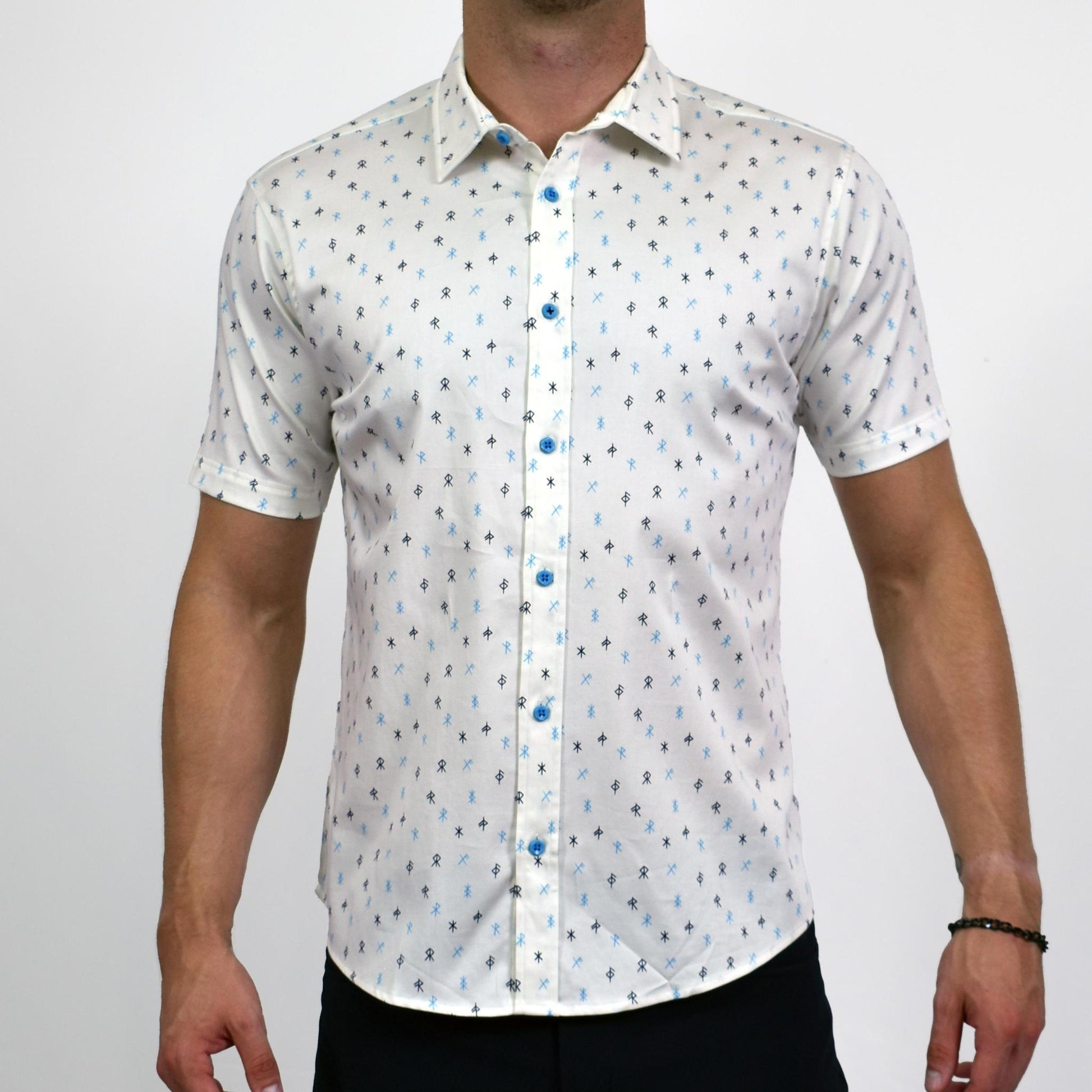 Runes Cotton Stretch Short Sleeve Button Down Shirt from Assassin Menswear